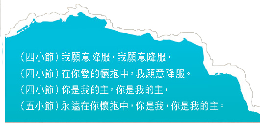 句都應以一種較為細聲及平靜的聲音來演繹,從而帶出「順服」的心。「我願意降服」應該是一種內心的