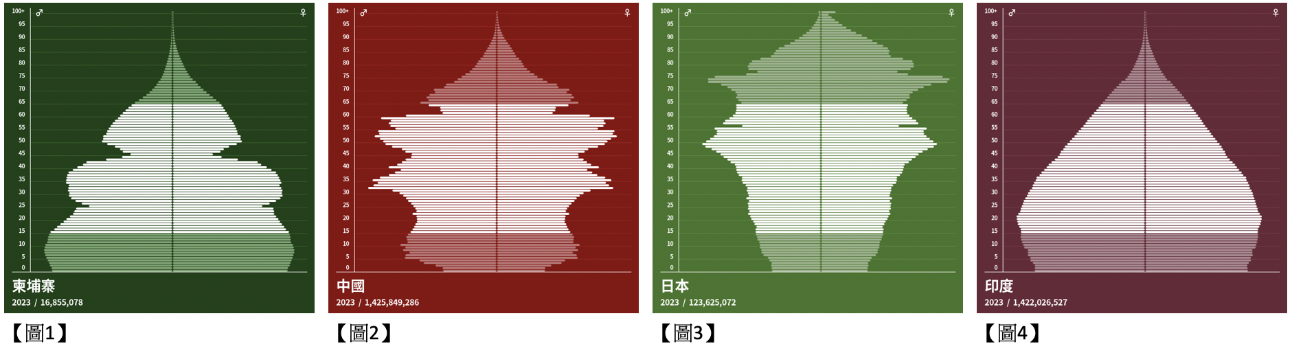 、日本【圖3】及印度【圖4】的人口金字塔。