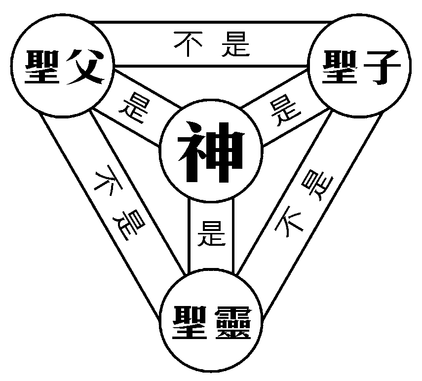 infinitely perfect, and eternally existing in three manifestations: Father, Son and Holy Spirit」(意译:这世界只有一位神,