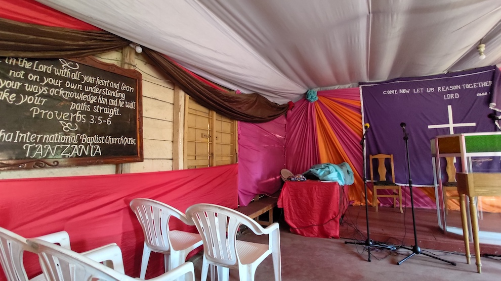 坦桑尼亚是一个民族多元的国家,他们聚在一起崇拜,其实已是基督跨越种族与文化、圣徒相通的体现。有些崇拜诗歌用浸信会的英文诗歌集,最少看着诗集也能明白歌词意思。有些则是本土Swahili语诗歌,纵然不明白,也能从音乐及其他崇拜者的身体语言与语气感受到大概的内容,自己纵然未能唱出歌词,但也能投入其中。崇拜大部份内容都有英语传译,包括欢迎、报告、见证分享、代祷和证道。牧师当日证道讲圣灵的工作,证道内容的神学非常扎实;在牧祷时牧师更特别用英语为我们几位海外新来宾祷告。崇拜后除了跟会众一同拍照留念,牧师也邀请我们去他的办公室交谈相交。他关心中国教会的情况,为香港仍能保持宗教自由而感恩。也提到他们国内的未得之民哈扎族人及建堂的需要,感恩大家都一同拥抱同样的普世差传使命!