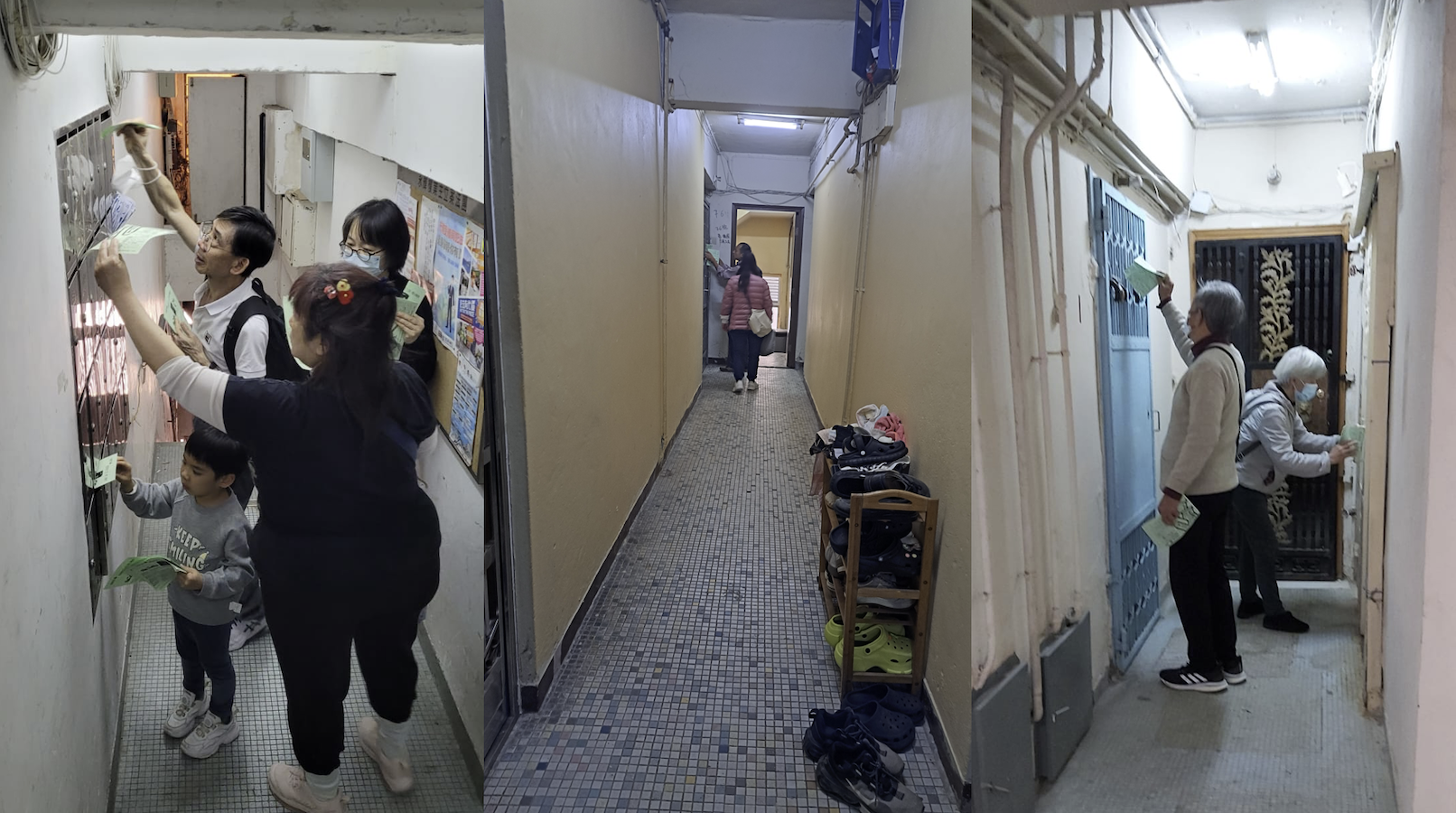 或许,你会问:从哪里邀请街坊来登记爱心粮仓呢?早在去年年尾开始,我们招募了一班义工弟兄姊妹,他们在多个主日的下午,一同走到观塘区的劏房大厦「扫楼」——就是逐家逐户派发爱心粮仓的单张了!每次看到出队派单张的弟兄姊妹,心中不期然感动起来,他们为着爱邻舍的心,即或走进残旧的唐楼,在没有电梯的情况下将每一张单张送到街坊的门口。有时他们会被人拒绝,有时又要机警地跟楼下的保安员讲解用意。今次义工弟兄姊妹走访所派单张的大厦差不多有60多幢大小楼宇,他们在服侍中不只是派发单张,还付上体力和脑力,更重要是他们爱人爱神的心!