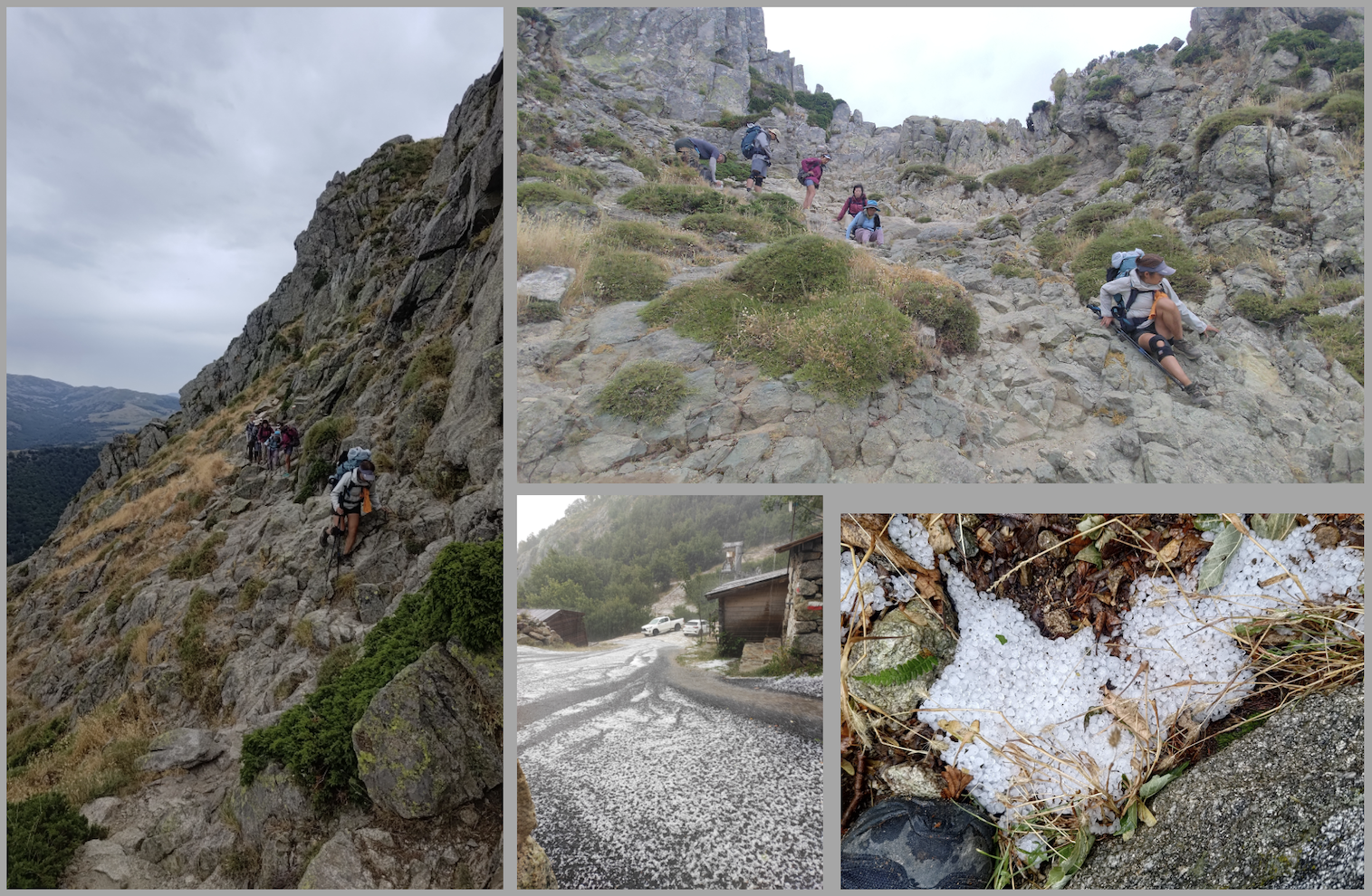 到第5天,我与脚友本期望登上一座较着名的峰顶,可惜半途风云变色,行雷闪电,无奈要折返,再走山腰路线避开雷轰,继续前往目的地。地中海气候夏天是旱季,少降雨,选择这季节挑战就是这个原因;可惜山上天气因地形复杂而变幻莫测,到了下午,竟落下如粗盐般的冰雹,实在始料不及。我也是人生第一次在冰雹下行山,幸好冰雹体积细小,影响不太大。当日雷声不断,一路行心里一直哼着《天地赞美》(特别是「风与电也歌颂」这句歌词)和《Be Still》,这英文诗歌其中一句歌词:「When the oceans rise and thunders roar, I will soar with you above the storm.」(大海翻腾与雷声震天之时,我会与神翺翔于暴风之上),很应境!纵然面对风暴仍能安稳主里。抵达目的地后,听闻有行山人士因装备不足而患上低温症。感恩纵然明天难料,一切不在掌握中,但有主垂顾仍能享平稳安静。人不能为明天夸口,只能夸我们的全能真神!