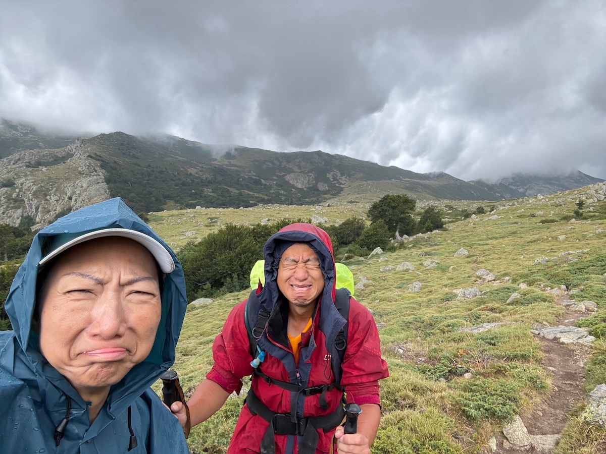 结果,我们的航班因颱风韦帕的吹袭而取消。上网搜寻新的机位,要比预期迟两日才抵达当地;由于山屋的住宿已一早预约好,难以延期。最终我们选择在十号风球下搭taxi去机场,以候补身份登上了因颱风而滞留到傍晚才能起飞的航班。重新购票,几经波折,共乘了4程班机,终于如期到达目的地Corsica(在地中海上属法国国土的科西嘉岛)。能如期抵达,如期起行,真的绝非必然。