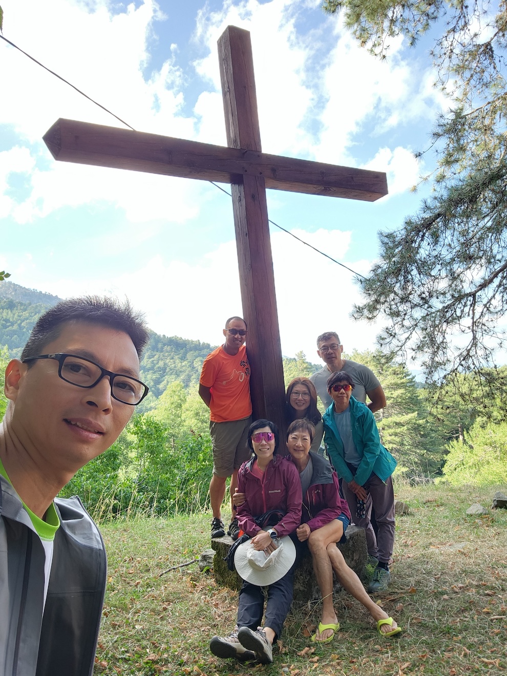 我们除了在住宿的地方一起崇拜,比较深刻的一次,是在当地的第一个主日。在行山途中,碰巧主日我们到达远足路线的中间点,是一个小镇;在步往营地途中发现附近小山丘上有个木制的十字架。我们就坐在十字架下,望着已经或将会走过的高山低谷崇拜,唱着《我要向高山举目》、《God will make a way》、《脚步》等诗歌;彼此勉励不但行难走的山路,更要行跟随耶稣基督的窄路。其实在旅途中,不时会看见不少户外地方树立了十字架;还有在最高的几座山峰上,也会以十字架来标识峰顶的位置,见证着基督教文化植根于当地。