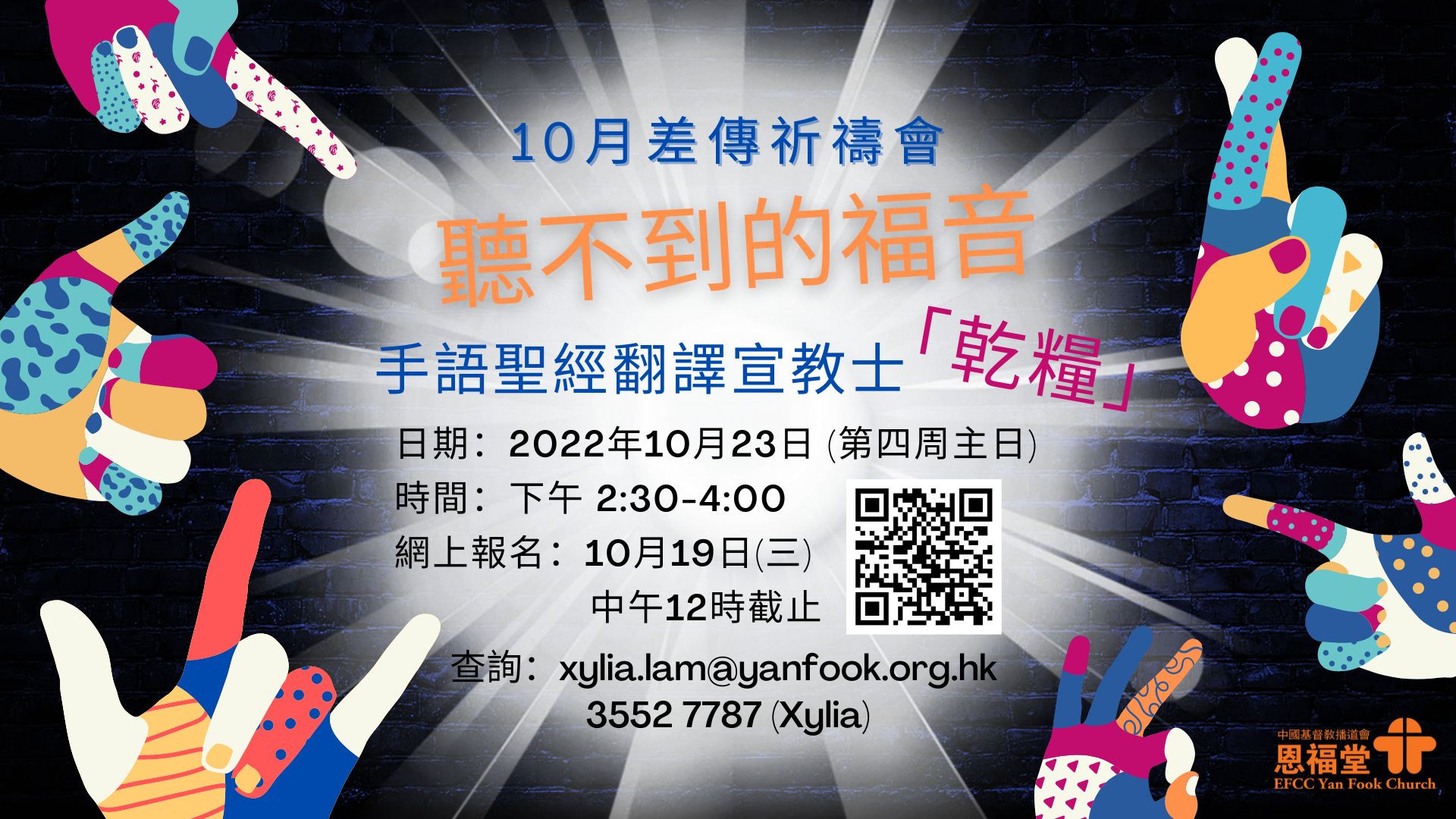 敬拜、手語聖經翻譯宣教士「乾糧」分享、為宣教士禱告 |