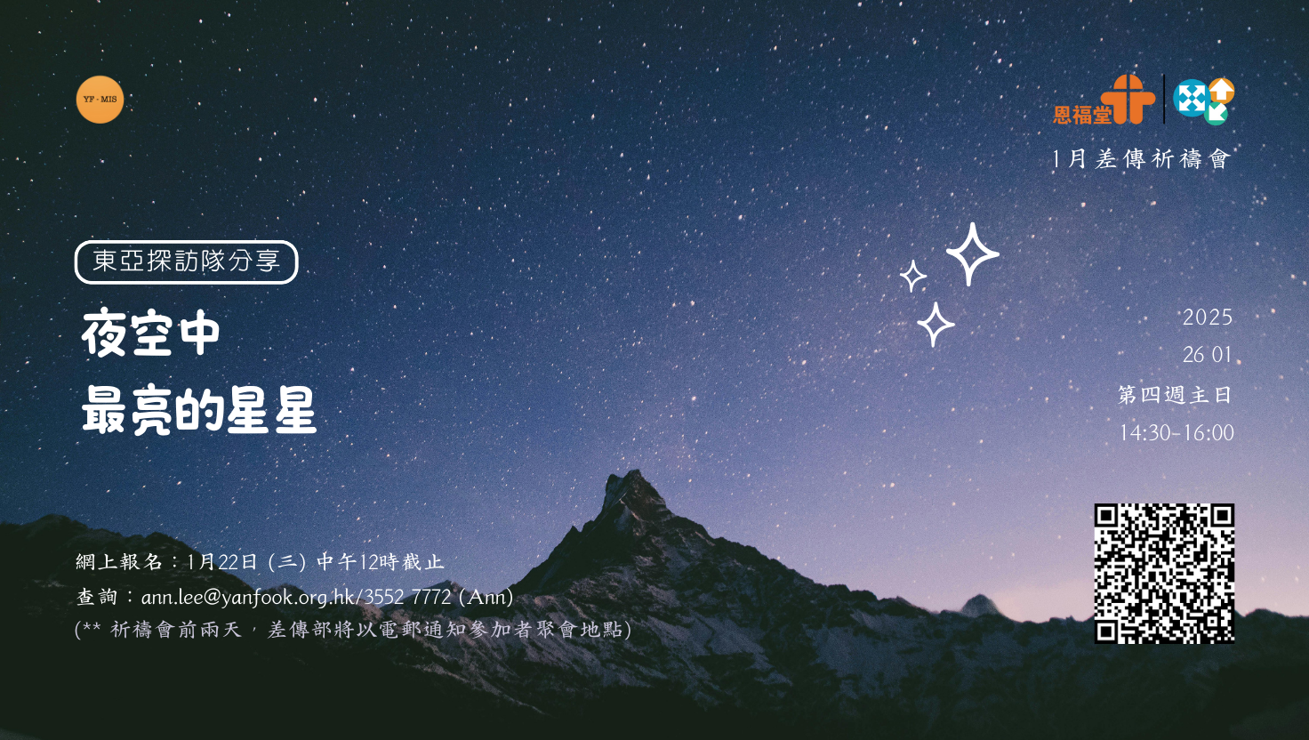 **報名後,祈禱會前兩天,差傳部將以電郵通知參加者聚會地點。最新消息可留意差傳部網頁及差傳部Facebook專頁。