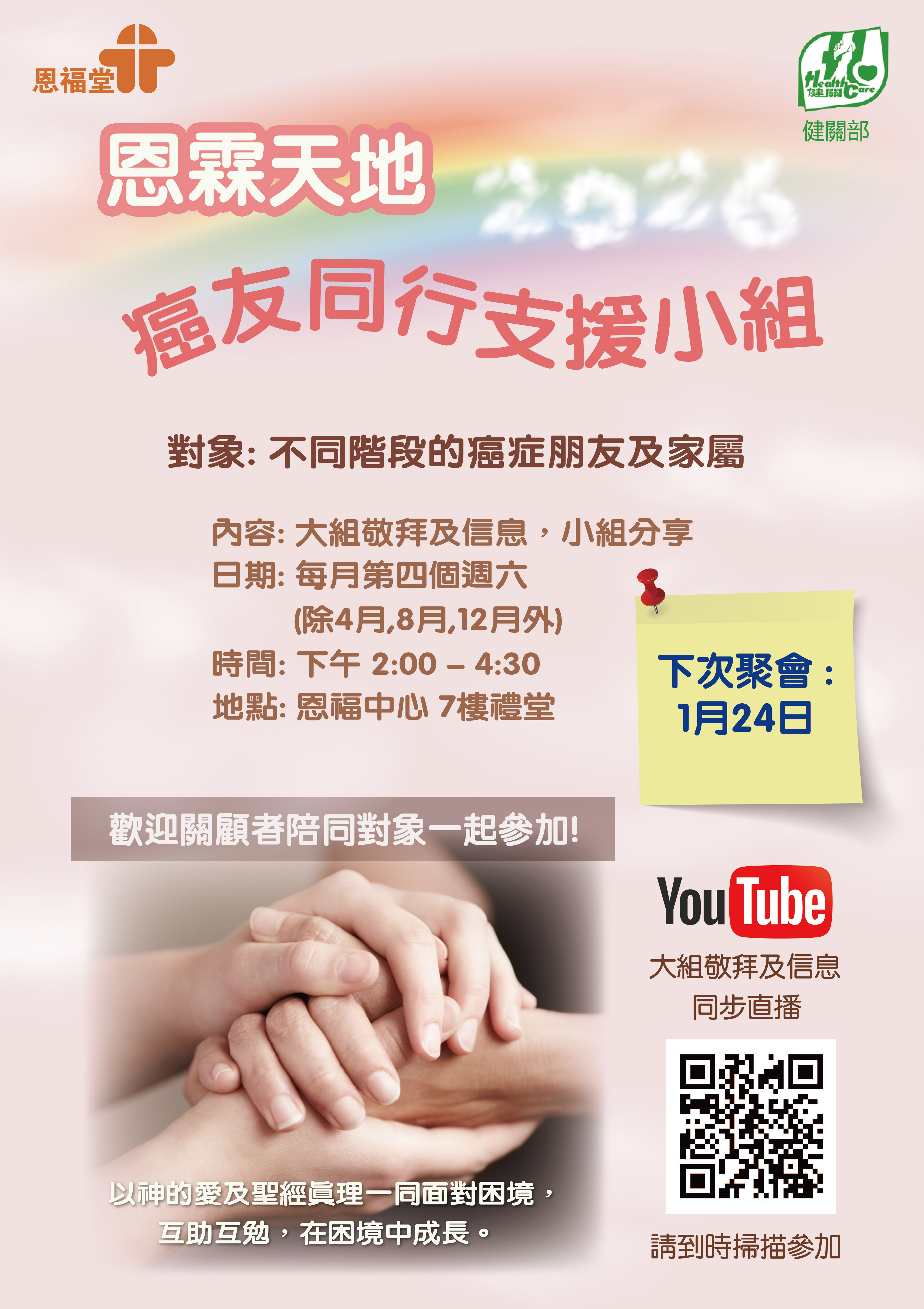 【恩霖天地】癌友同行支援小組聚會 - 24.1.2026