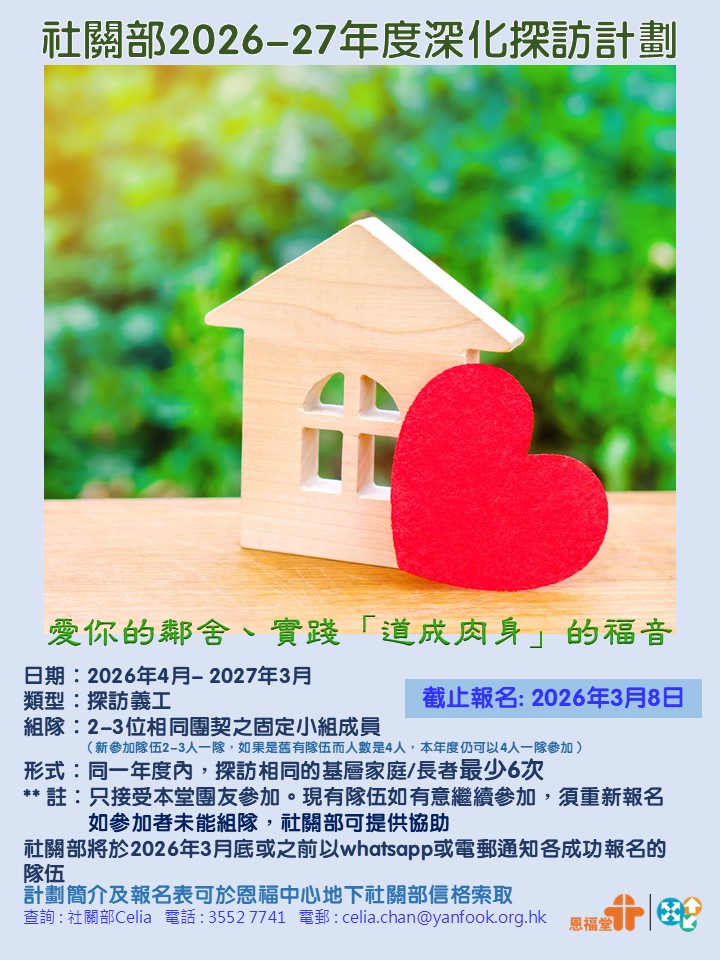 社關部「26-27年度的深化義工」開始招募!