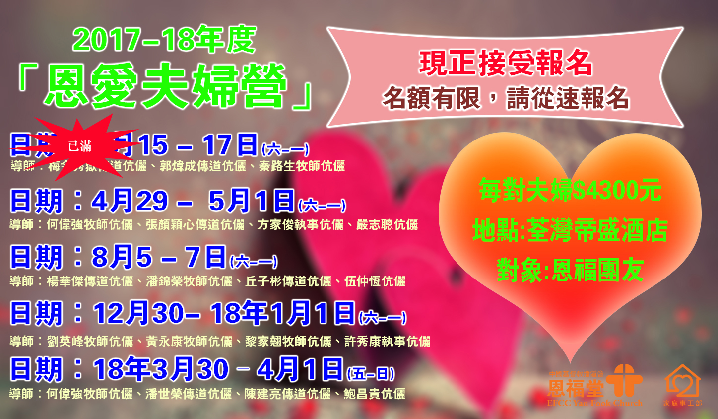 2017-18年度恩愛夫婦營正式接受報名