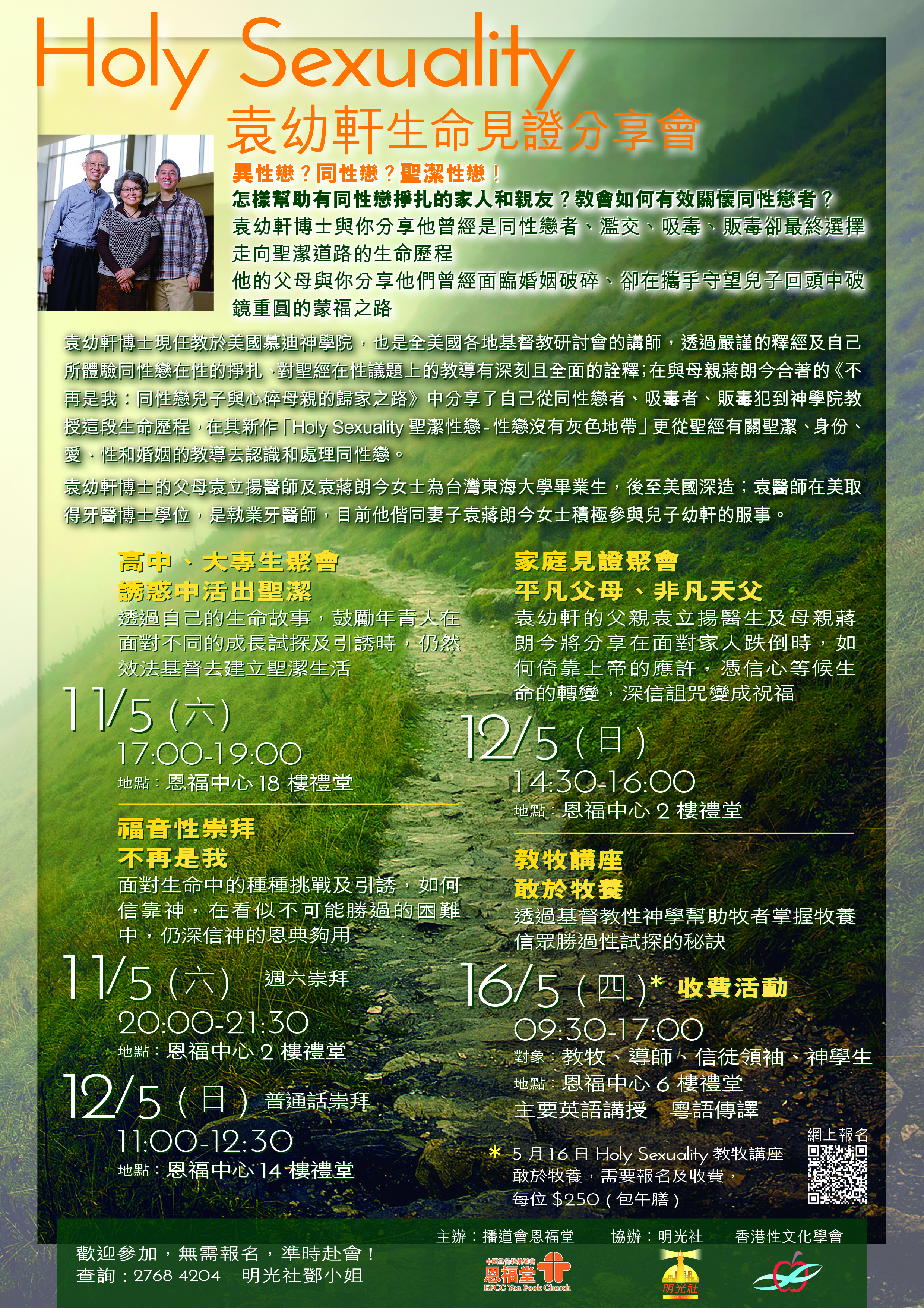 《Holy Sexuality》袁幼軒生命見證分享會(5月11日、12日、16日)