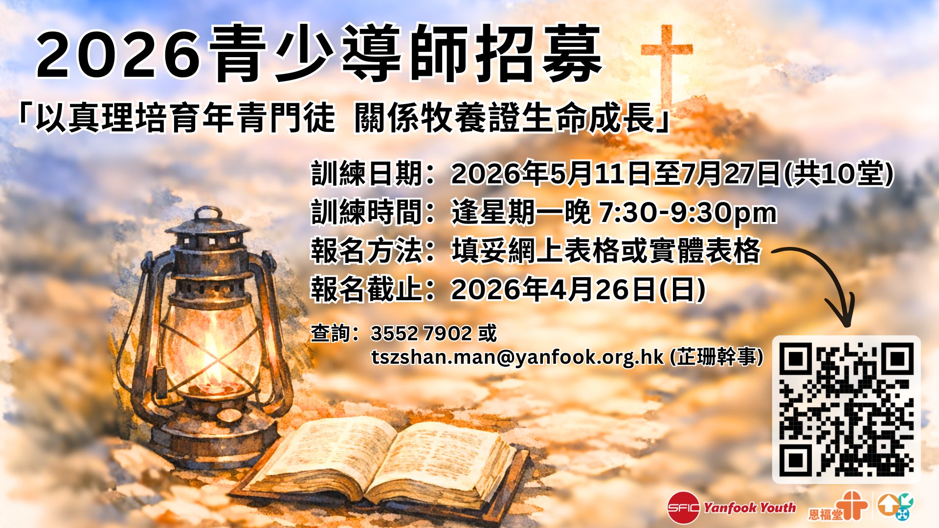 | 2026-03-19 | 2026年 夏季 「婚前牧养及辅导-建立基督化家庭」课程 |