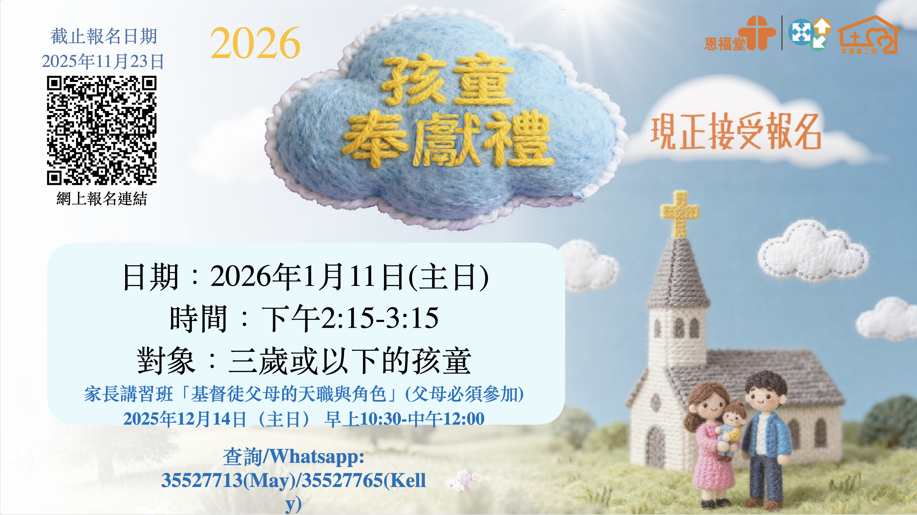 | 2025-10-18 | 2026年1月11日 孩童奉献礼 |