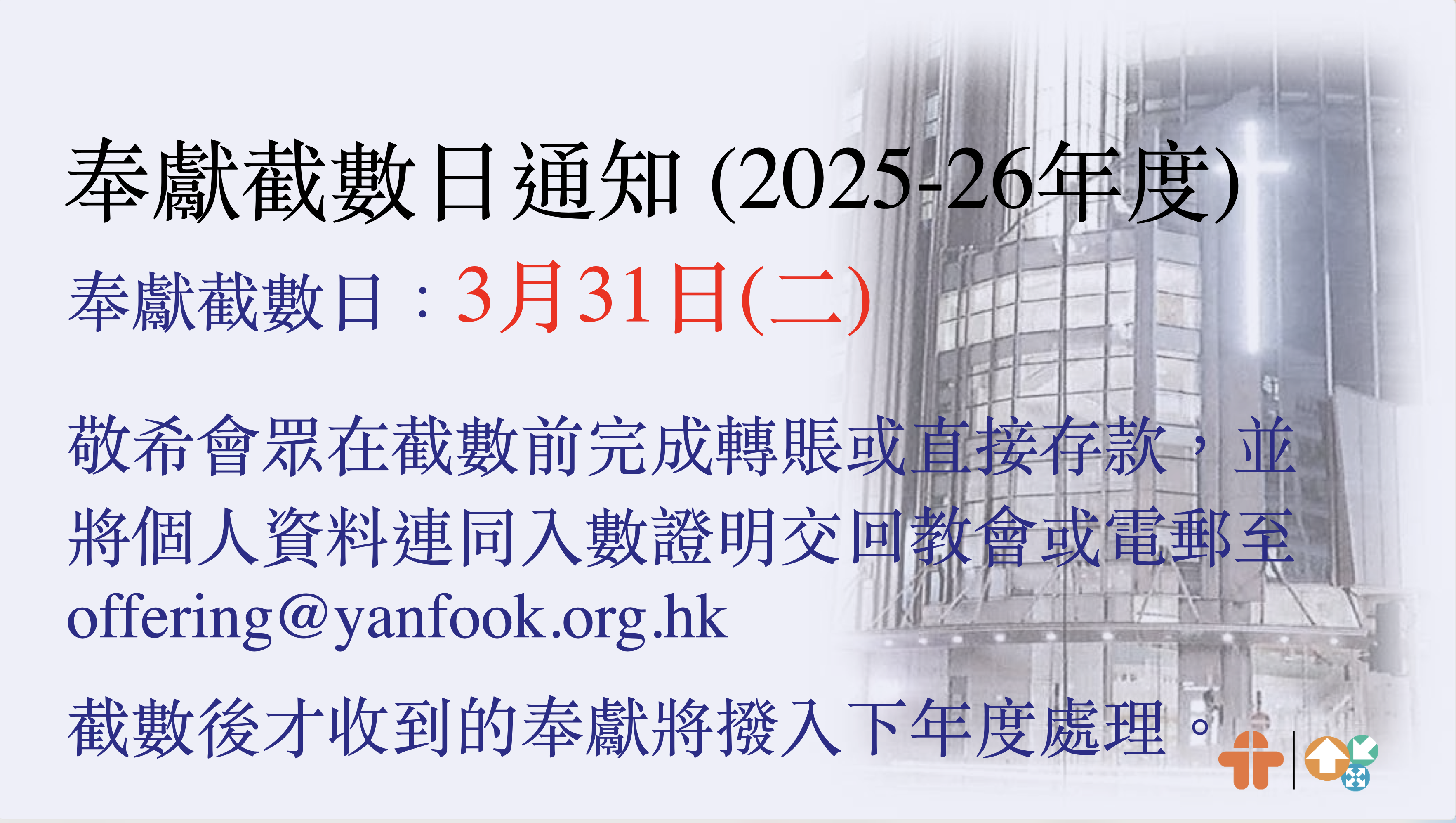 奉獻截數日通知(2025-26年度)