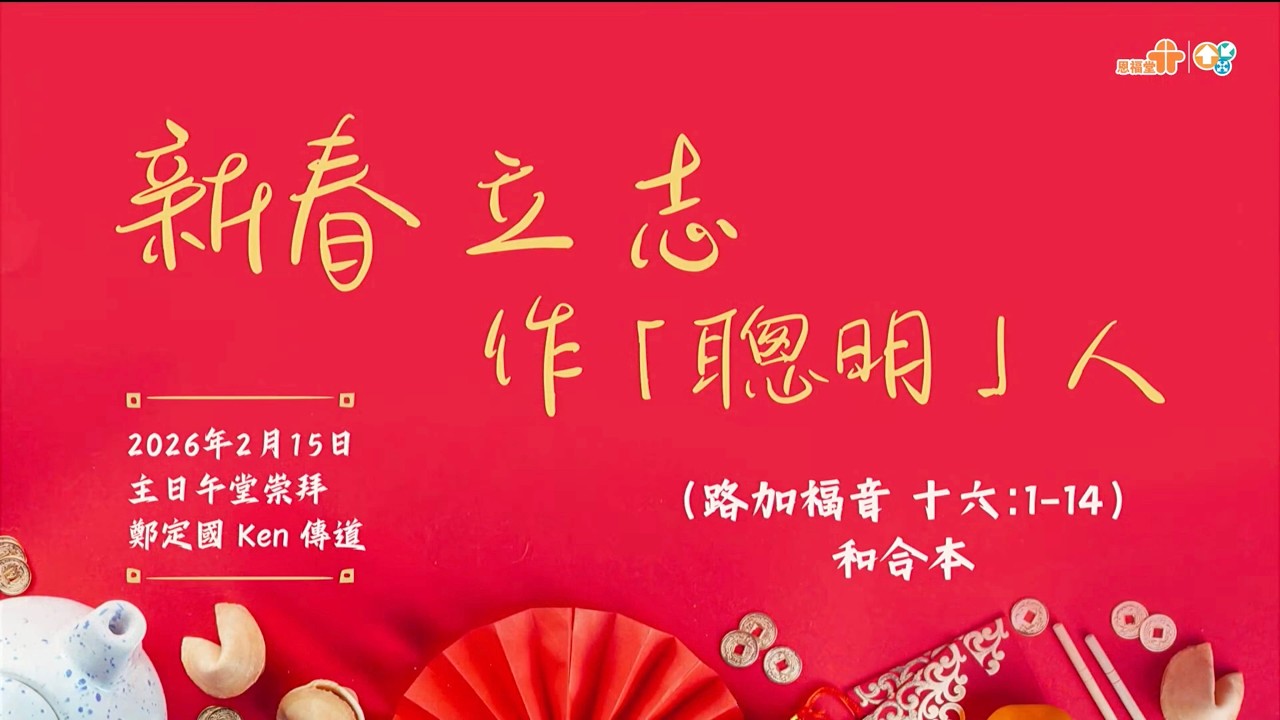 時段:3.恩福午堂講員:鄭定國傳道經文:路加福音16:1-14 (和合本)日期:2026-02-15