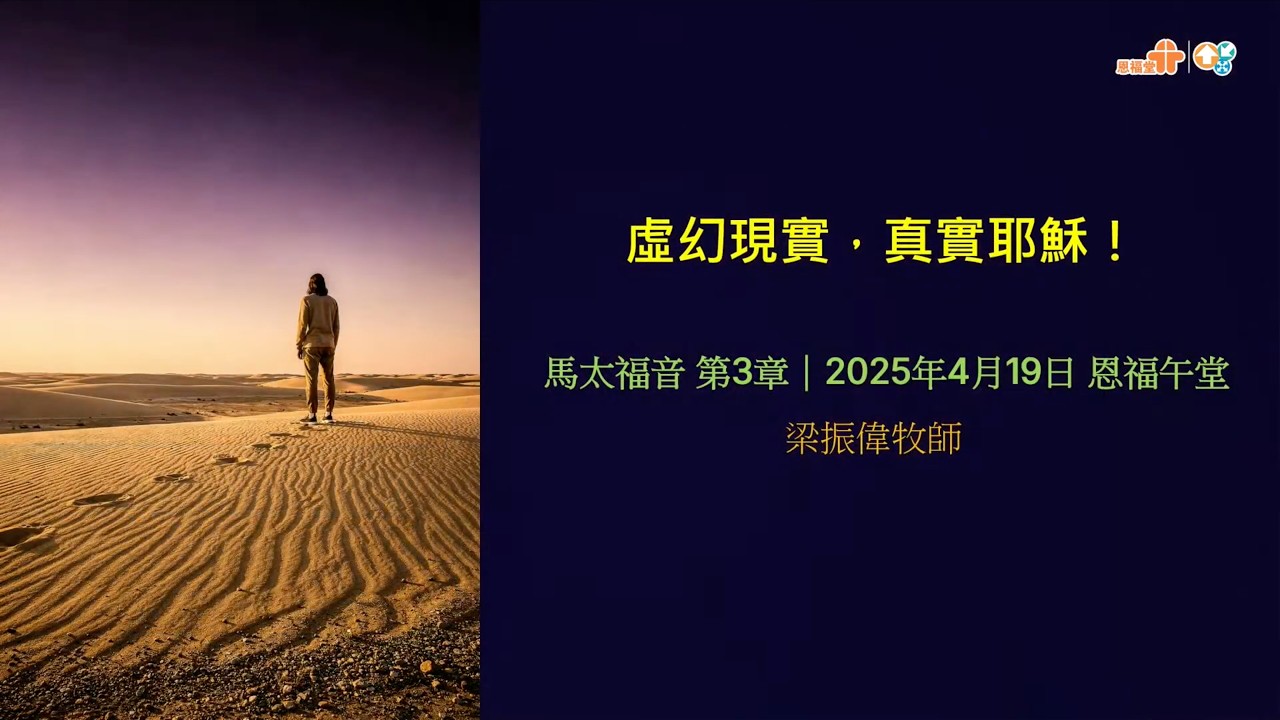 時段:3.恩福午堂講員:梁振偉牧師經文:馬太福音3章 (新譯本)日期:2026-04-19