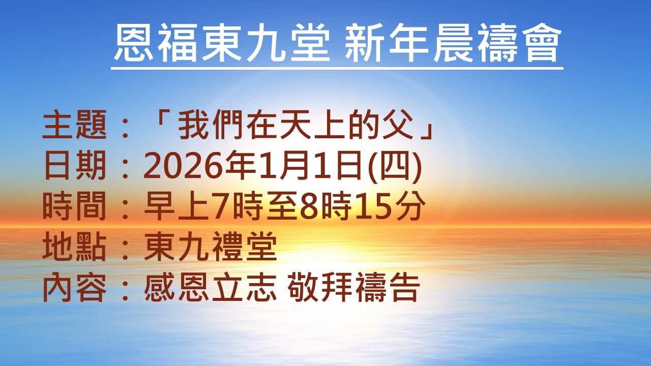 2026年1月1日(四)恩福東九堂新年晨禱會