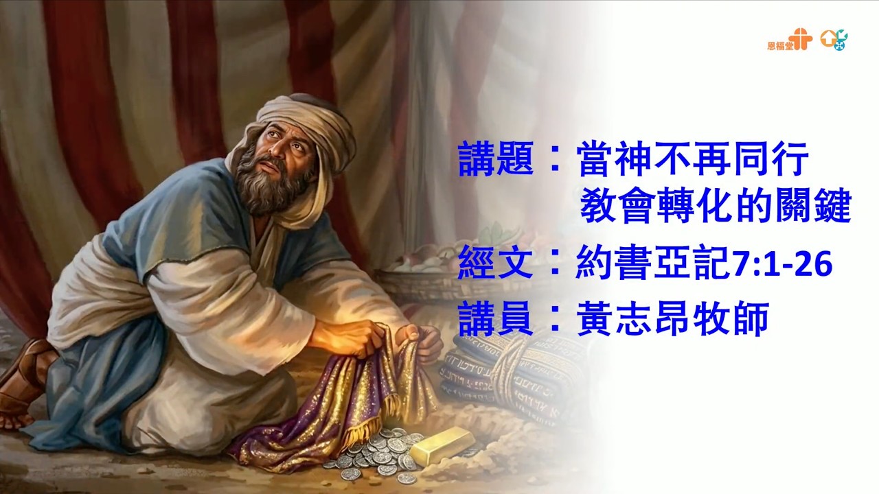 時段:1.恩福早堂講員:黃志昂牧師經文:約書亞記7:1-26 (和修本)日期:2026-04-26
