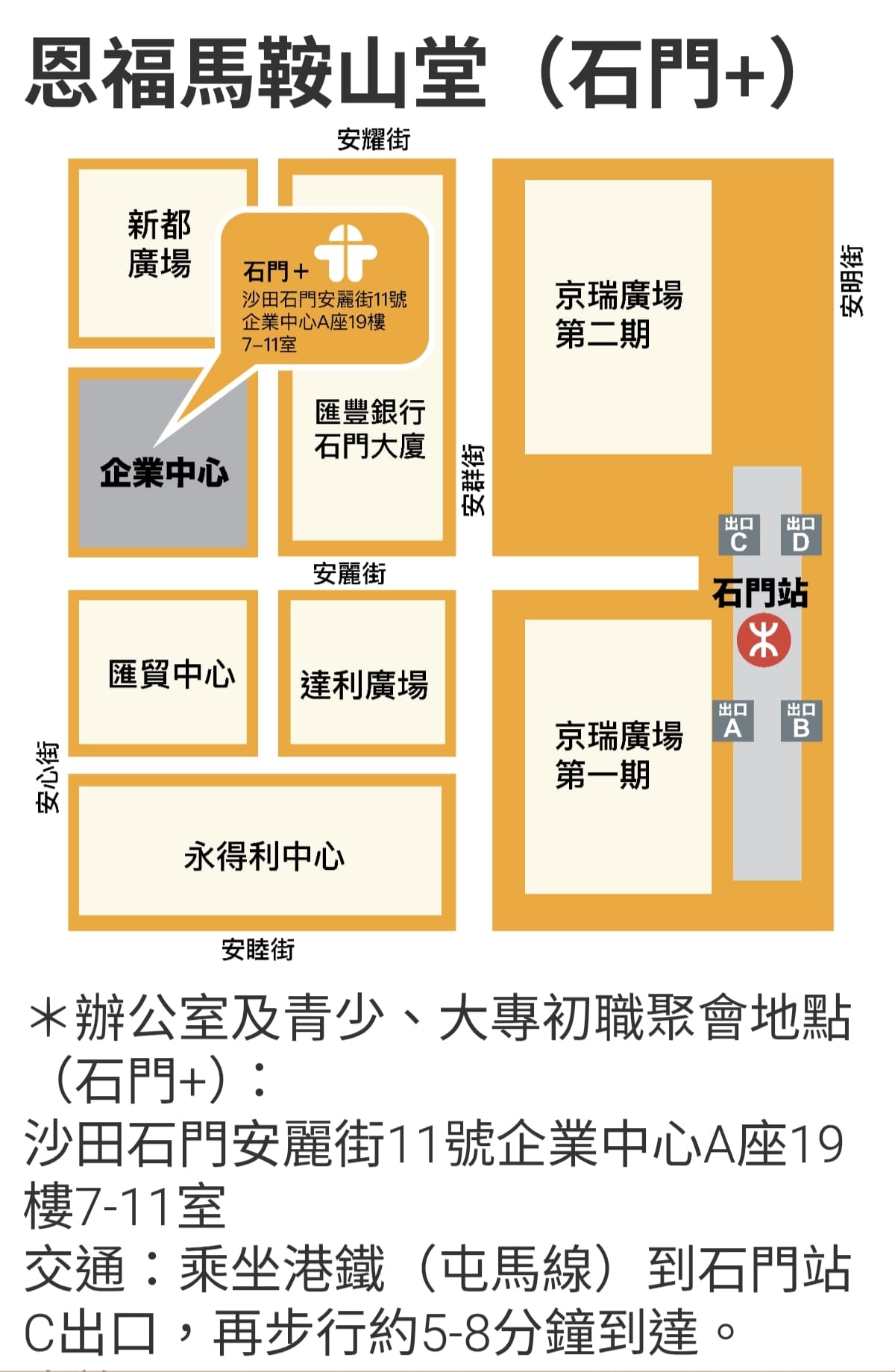 聚會地點 : 沙田石門安麗街11號 企業中心A座 19樓 7-11室