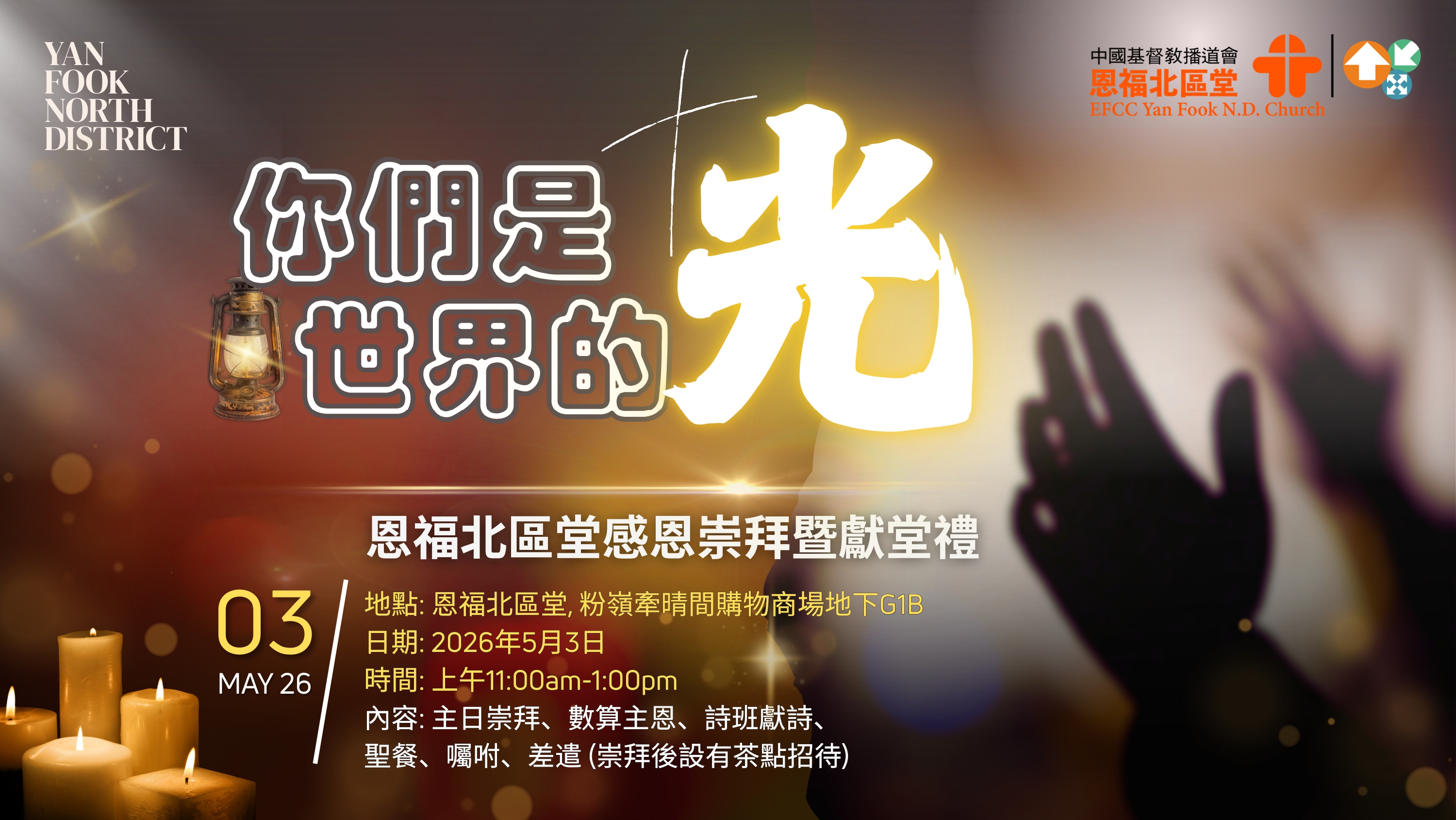 特別通告 - 北區堂獻堂禮暨感恩崇拜